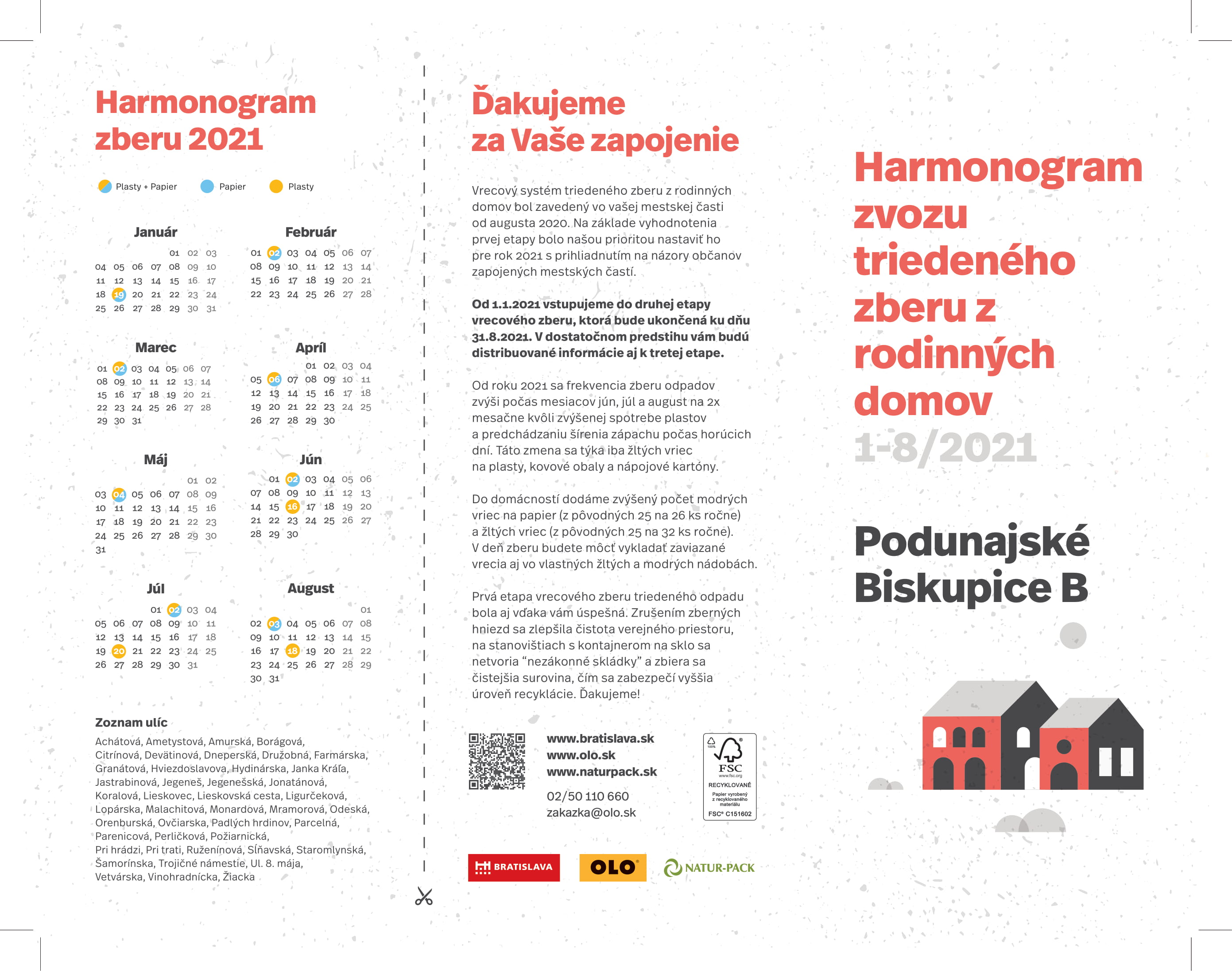 Harmonogram zvozu triedeného zberu z rodinných domov 1-8/2021
