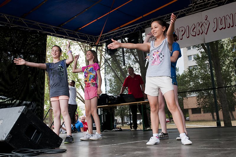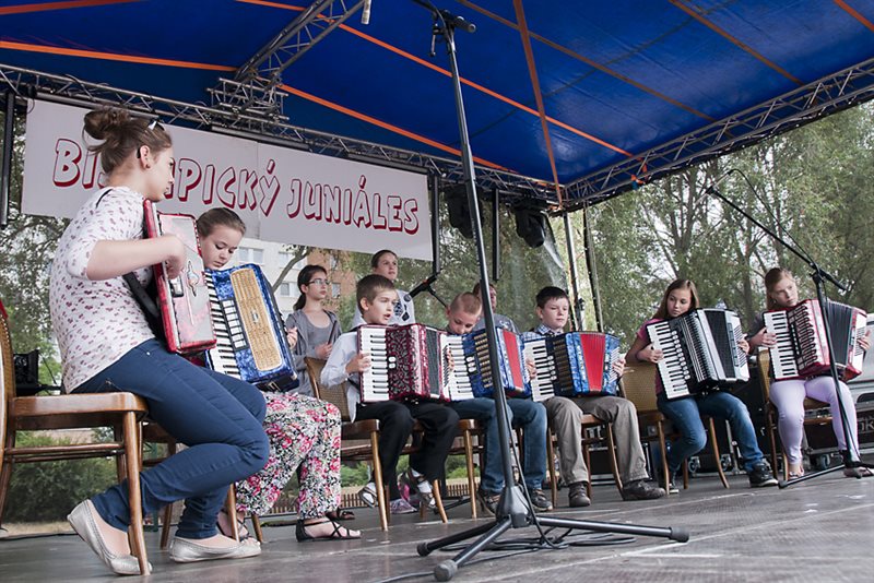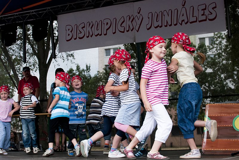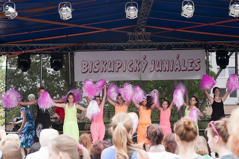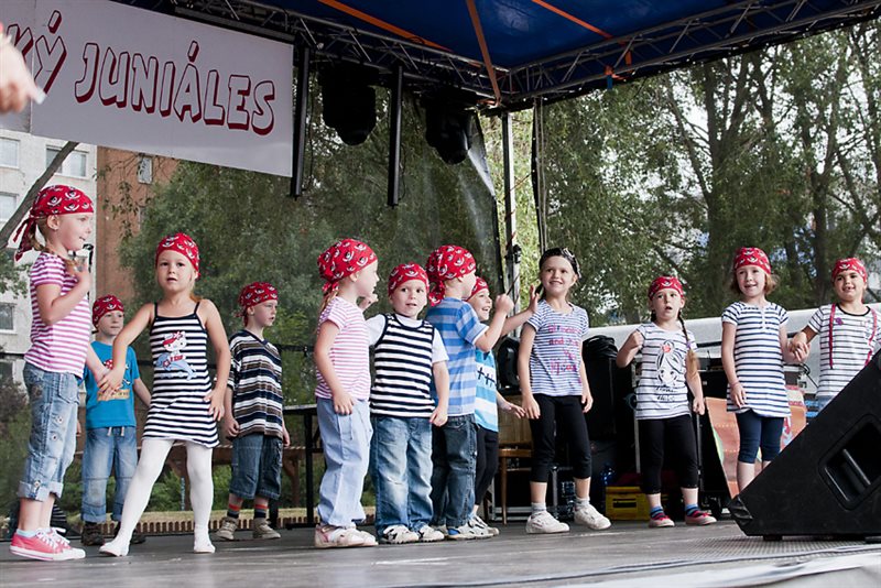 V sobotu 23. júna o desiatej hodine otvorila už tradičný juniáles, tak ako každý doteraz, starostka mestskej časti PhDr. Alžbeta Ožvaldová, autorka myšlienky obnovenia juniálesov v Podunajských Biskupiciach. Program – vystúpenia detí z miestnych materských škôl a žiakov zo základných škôl len tak ,,fičal“ vďaka precíznej príprave pedagógov. Na javisku sa striedala jedna škola za druhou s tanečnými choreografiami, spevom, cvičením a ľudovými hrami. Nadšení a hrdí rodičia tlieskali, občas síce od údivu zabudli pridať silu do rúk, ale na vyzvanie vedúcej oddelenia školstva a kultúry PaedDr. Beaty Biksadskej, ktorá program moderovala, pridali a deťúrence mali ohromnú radosť.