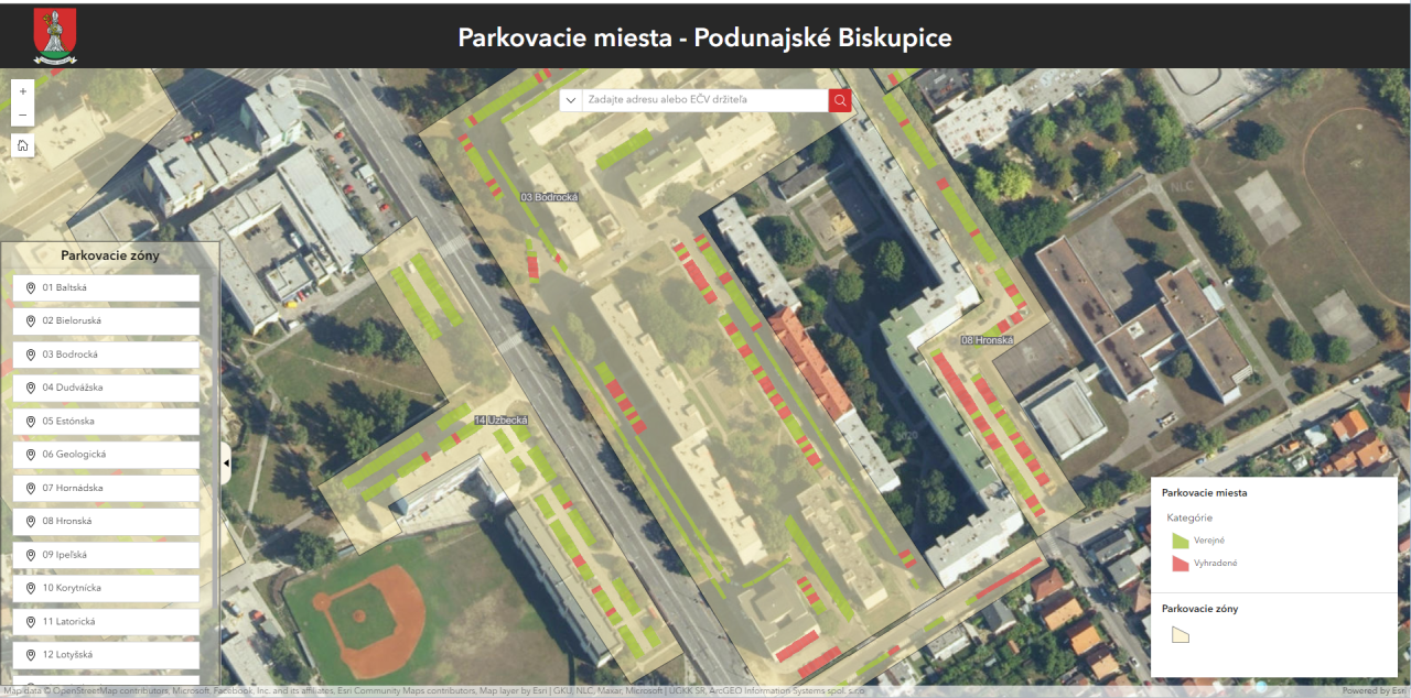 Online mapu nájdete na našej stránke v sekcii Parkovanie: Parkovacie miesta - Podunajské Biskupice